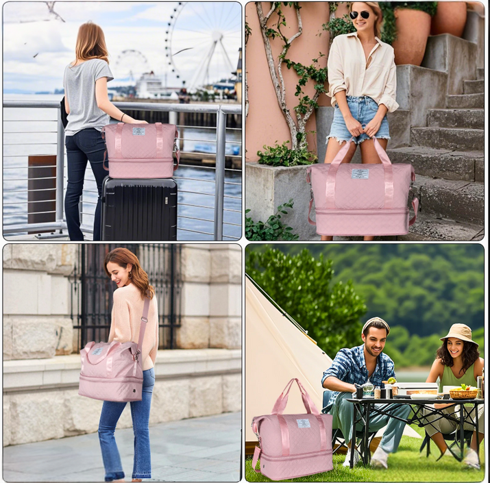 Denna väska är perfekta för både resa och träningen. Den har stor kapacitet och rymmer kläder, skor, laptop med mera. Den är hopfällbar, lätt och slitstark samt kan fästas på resväskans handtag.Perfekt som weekendbag, träningsväska eller handbagage!